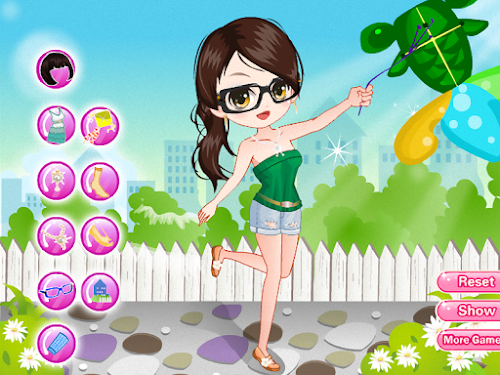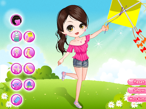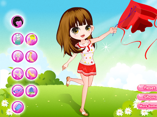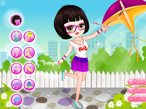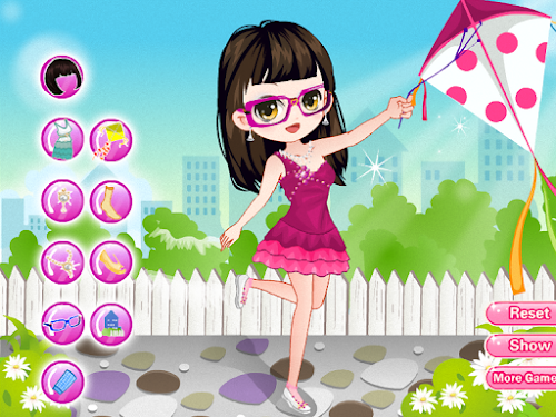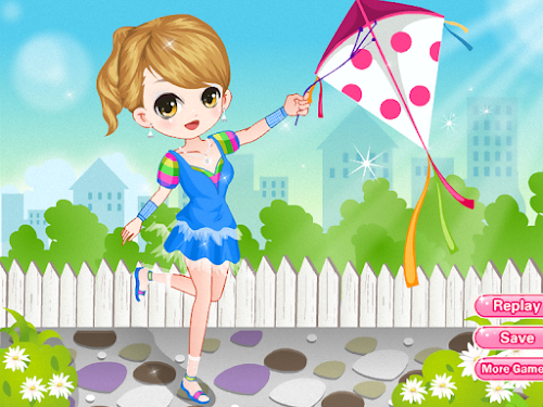 Our friend thought that today is a great day to fly a kite. She went out and buy a kite and ready to lift up but does not know how to dress. We must help her. We need to polish up your hair, to put them a more relaxed dress or a dress, a pair of jeans with a shirt or a blouse. We need to choose some accessories to match the dress chosen before, we have to wearing a pair of shoes, boots, sandals or even sneakers. Have to choose a pair of sunglasses and our work has ended. Hopefully, the wind blows the kite will easily and very high up