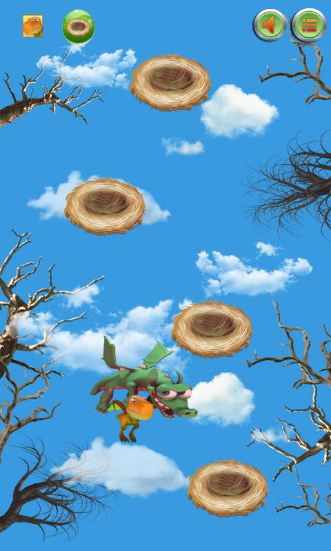 But beware!!! This fun game of flying from nest to nest could be lethal. There is no hunter but there is a hungry monster dragon, in search of a prey. He is hovering everywhere around the forest and keeps an eye on every moment of the baby dragon. The baby dragon misses the nest and monster dragon will clutch her in his strong jaws.