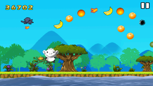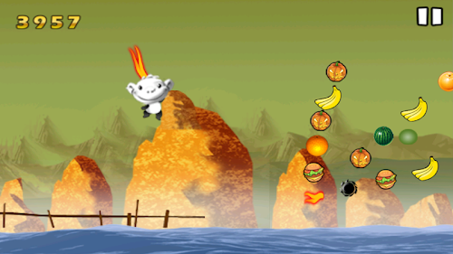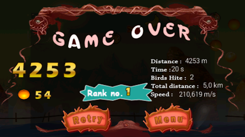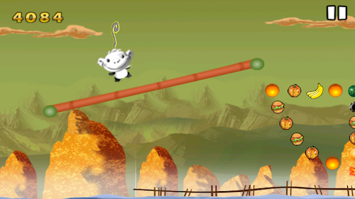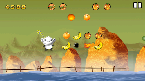While jumping monkey will enjoy eating fruits and get more points, others animails and birds help monkey to fly more distance