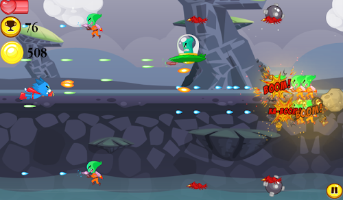 Flying Squad is a free and addictive arcade game designed to challenge reflexes. Push your skills to the limit and make hightscores, shoot the enemies, earn coins, improve the characters through the different areas and become the number one on the leaderboard.