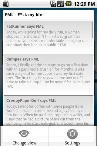 Read the hilarious F*ck My Life stories from your home screen: user-submitted stories of unfortunate happenings that ruined your day. Similar to tfln and mlia