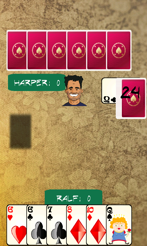 This game has no winner in Durak, fool game, only a loser. Durak,fool game, is played with 32 cards: the A, K, Q, J, 10, 9, 8, 7 and 6s from a standard 4-suit 52-card deck are used. At the start, each player is dealt six cards, which are played in a series of bouts of attack and defence. After the players have received all their cards, reveal the top card of the deck. Place it on the middle of the table, place the deck on top of the revealed card, covering it half way. This card represents the trump suit and is now at the bottom of the deck. Cards in this suit hold a higher value then the Aces of the other suits. Within the trump suit card hierarchy is maintained.