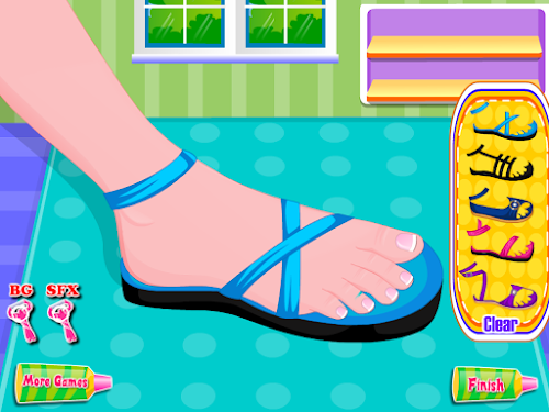 Girls are very particular when it comes to their feet. Not all girls are beautiful and neat feet so I have to take care of them. At our salon came a girl with many dirty marks and scratches on foot and you really need to help to make them beautiful legs as she wants it long. For starters, his foot and spins out to clean the blood produced by them. We need to administer an injection to not feel very much pain because we start to work on the patient's open wounds. We need to eliminate bacteria and to stitch a wound deep enough. Further he must cover scratches and bruises eliminate them from the fingers. We need to head heels as they are very dry and warped, we must break baskets on the legs and to remove hair because it looks ugly. Then he must cut toenails and recommending to a shoe. Please try other games for girls in this series to see if indeed you're doing.