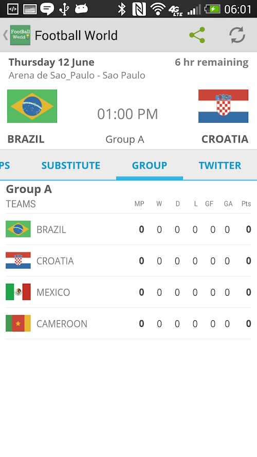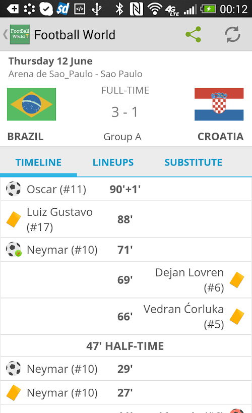 A perfect companion app to keep up with football World Cup 2014 in Brazil. We bring all 64 matches with live score update and all other details.