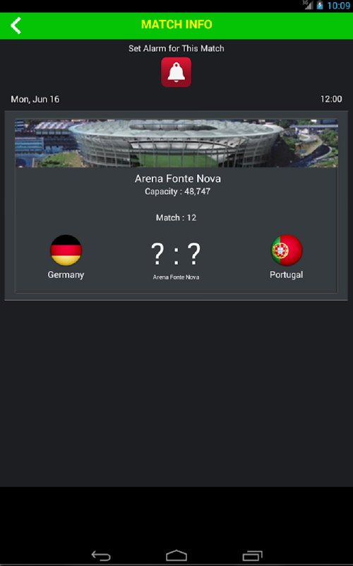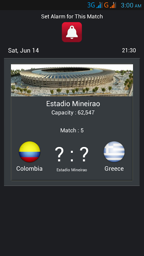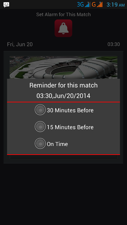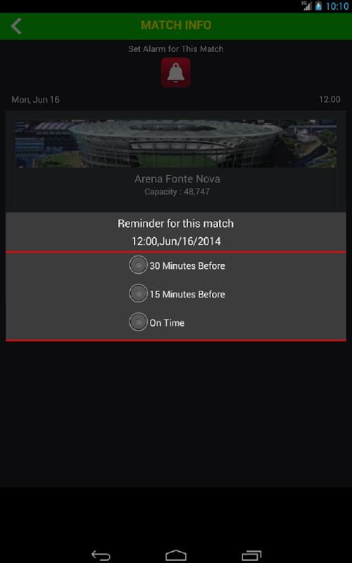 You can set alarm for any specific match, which will remind you about the match. You have option to set the alarm before match starts or set on match time. So no more missing of any of your favourite games.