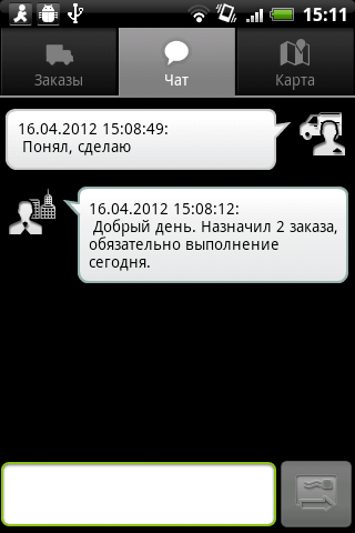 * Онлайн-чат курьера с оператором. Теперь можно будет письменно фиксировать причины смены маршрута, отмены заказа, результаты общения с клиентом. Все это поможет при разборе сложных ситуаций.