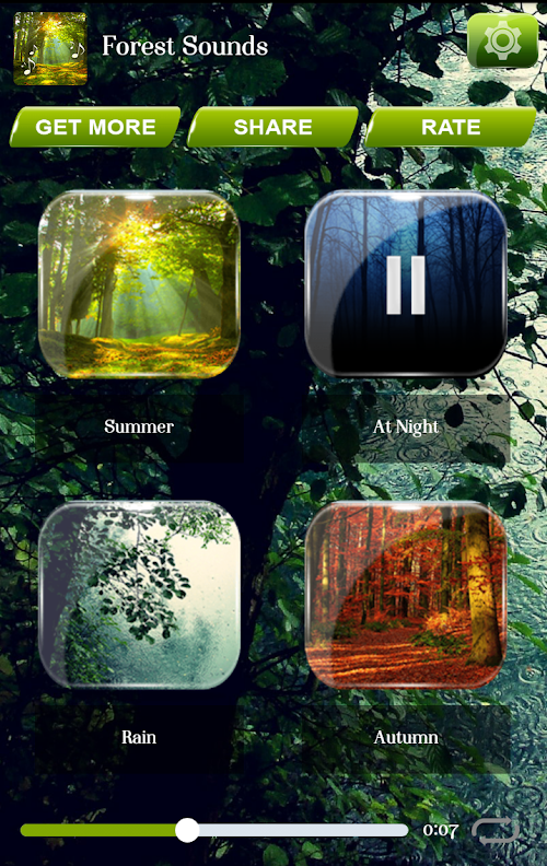 Forest Sounds offers a delightful collection of gentle and soothing sounds which will help you feel refreshed and put you in a peaceful disposition. Forest atmosphere has a wholesome effect on your emotional state, it helps you relax and calm down, improves your sleep and restore vitality. Forest Sounds are meant to provide a calm atmosphere and you will absolutely adore them! Download this lovely app, share it with your dearest friends and enjoy top relaxing forest tones right now, completely free of charge! Forest Sounds is a charming new app for your mobile device which brings the most wonderful sedating sounds that will help you simmer down after a hard and busy day. Enjoy fine, calming tones, soothing message and alarm sounds which will make you feel stress free every time someone contacts you.