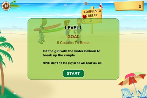 Aim and throw the water ballooons on the Girl and she will break up with her boy friend in Embarassment :P