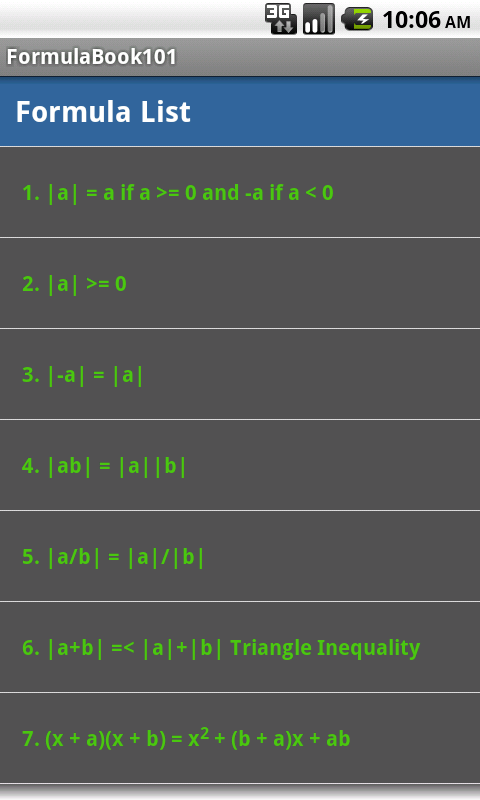 Math Formula is part of Formula 5001 is a simple application that helps you access a vast collection of math formulas, with thousands of mathematical equations.
