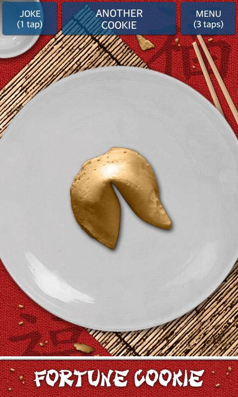 Set in a luxury chinese restaurant, Fortune Cookie with Prank has a number of built in fortune phrases to share. And you can add your own custom phrases, mixing them with the others or making them pop up at will, pushing the Joke Button.