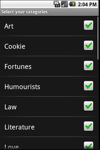 Over 6000 unique fortunes in categories which include art, cookie, fortunes, humorists, law, literature, love, misc, news, paradoxum, people, pets, politics, riddles, science, sports, startrek, wisdom, work & zippy.