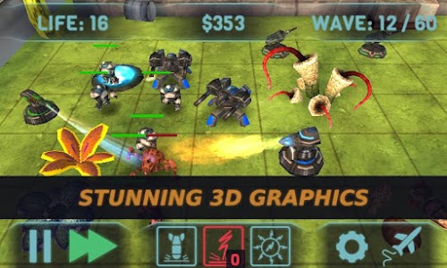 The invaders struck without warning! Defend your world against an alien onslaught spanning a dozen battle zones across four days of combat, each more difficult than the one before. With a complete arsenal of towers to build and upgrade, you must shape the invaders’ paths across the battle grid and eliminate them before they breach the containment zone. Unleash the power of 5 activated abilities to destroy your enemies, raining destruction down upon them in stunning 3D graphics! With every defeated invader, you’ll acquire Tech Points that can be used to permanently upgrade your towers, unlock new abilities, and activate power-ups.