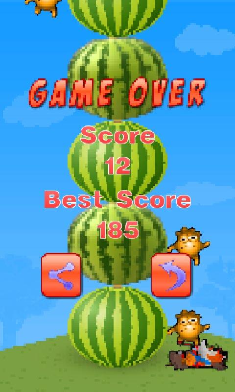 This fox is very hungry. She needs foods. The fox is very fond of fruits. So she has come out of her den, and went in the jungle with hunger dash. She knows where to find delicious watermelon. Her favorite!! There are lots of watermelon at the place. One top of each other. And for the cutter, she has a brand new axe. But this fox has to be aware about the dangers in cutting the fruits. There are many dangers in path of her and the delicious watermelons. Help fox to become a better fruit cutter.