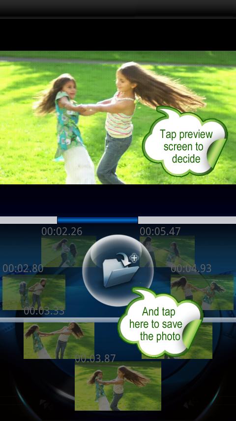 With frame grabber, grab still images from recorded video you've taken with your smartphone and get the best of both Video and pictures worlds.
