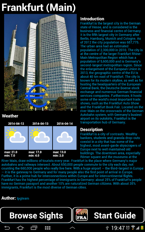 Frankfurt Offline Guide is a free Android application that lets you experience new way of exploring tourist sites.