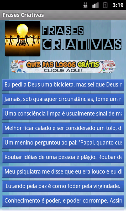 If you are looking to download other versions of Frases Criativas Android App, We have 1 version in our database. Please select one of them below to download.