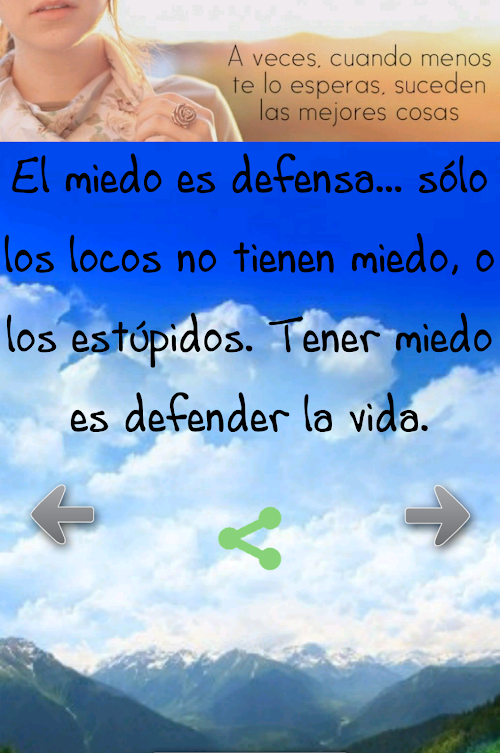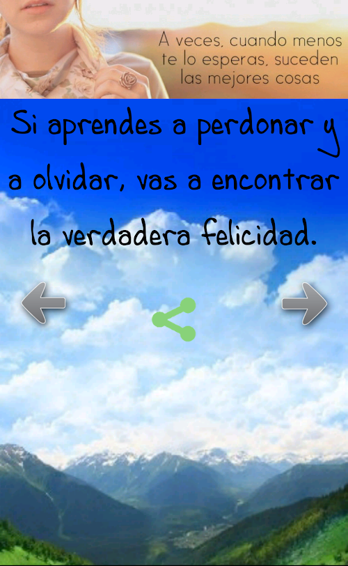 You are phrases of reflection will help in those moments when you need to remember how important it is to go ahead and that we must always try to be positive and appreciate what we have, because we never know when it might end. This application is completely in Spanish and you can use it to meditate and to value what they have to everyone you care about, because it contains many phrases to think. Here you will find both phrases of love and friendship, grief for something lost. Your partner, friends or family will thank you share with them some of these images. Vote and leave your comments to further improve every day a little more. Thank You.