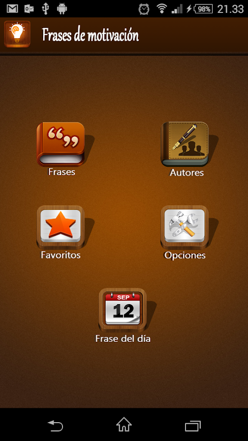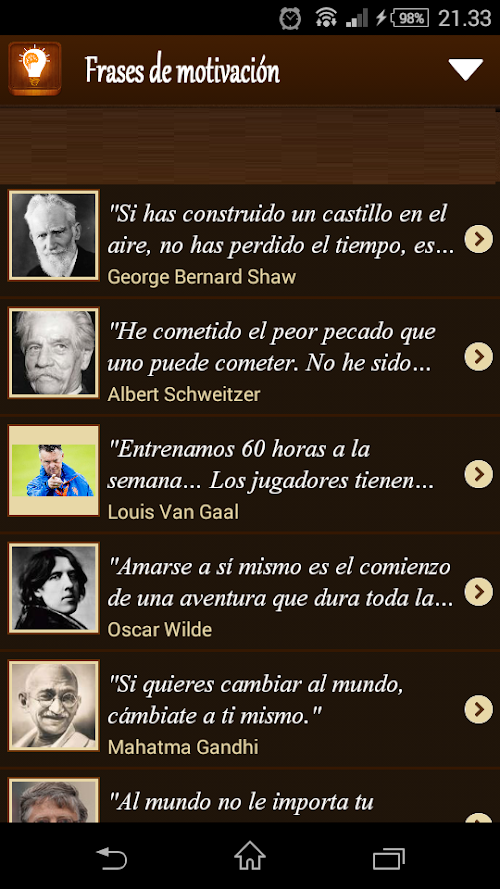 Recommended for entrepreneurs, artists, students, athletes ... or basically anyone who feels they need motivation in their day to day. In this app you will find the largest collection of motivational phrases for Android in Spanish.