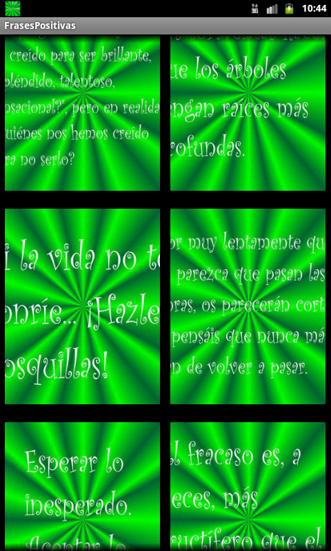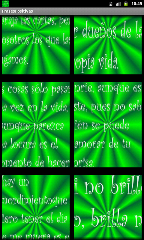 Con esta aplicacion podras disfrutar de 26 fondos de pantalla de alta resolucion con frases positivas.