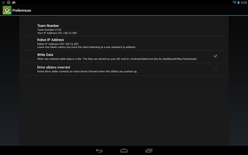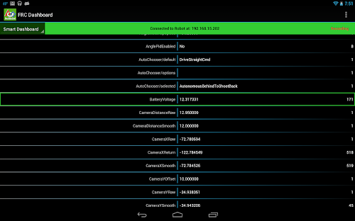The app mimics some of the features of the FIRST® provided Dashboard that runs on the control station computer. This app does not provide the enable/disable or watchdog features of the FRC® Dashboard - and the FRC® Dashboard is required to run the Robot.