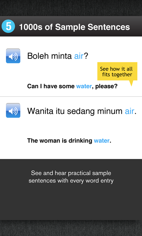- Sample Sentences: See and hear practical sample sentences with every word entry