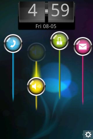 After the app installed, press the power key to wake phone, then you can see a beautiful lock interface, there are four default buttons: the main screen, SMS, telephone, voice switching.