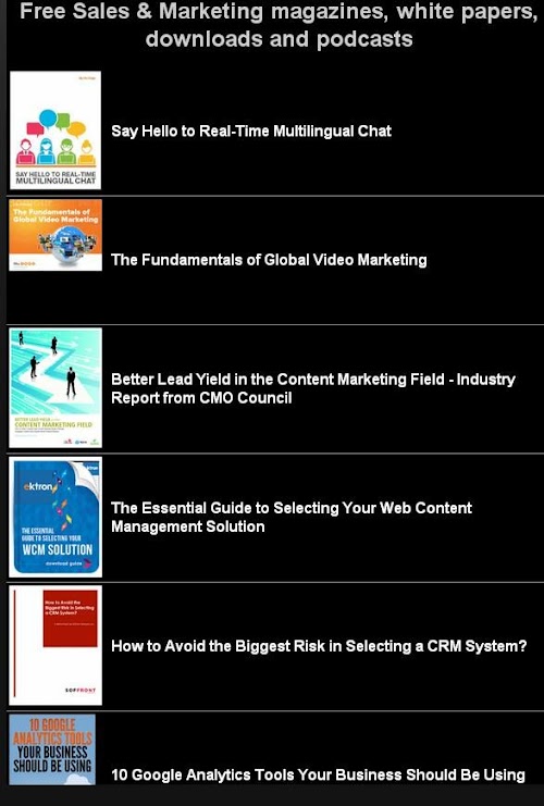 Browse through an extensive list of free Business, Computer, Engineering and Trade magazines, white papers, downloads,etc. to find the titles that best match your skills; topics include management, marketing, operations, sales, and technology. Simply complete the application form and submit it. All are absolutely free to professionals who qualify.