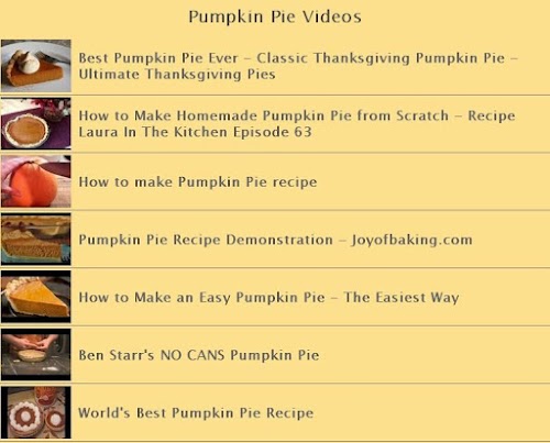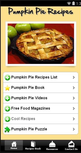 Free Pumpkin Pie Recipes application contain best pumpkin pie recipes found online, a list of many videos with different pumpkin pie preparation and other very useful resources to make the famous pumpkin pie. Pumpkin pie is a traditional sweet dessert, often eaten during the fall and early winter, especially for Thanksgiving and Christmas.