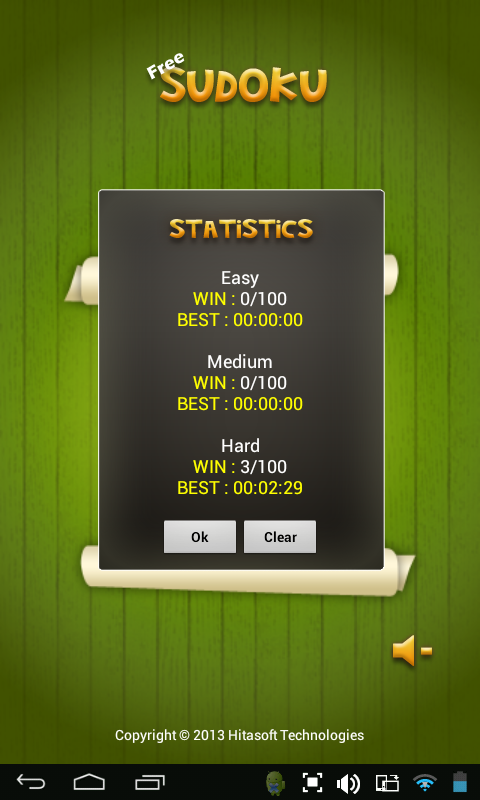 With 3 difficulty levels such as Easy, Medium and Hard, you can choose a new Sudoku puzzle to test your Sudoku skills. Necessary and useful Sudoku hints have been provided in solving Sudoku puzzle by illustrating the conflicting row, column and grid if you repeated a number. This helps you in learning Sudoku solving tips, tricks and strategies and finishing the game with less turnaround time and move on to the next brain bending puzzle. Minimum time taken at each level to solve Sudoku has been stored, challenge yourself and try finishing the Sudoku the fastest.