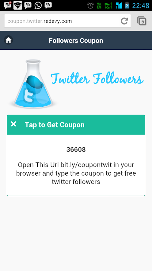 Every time you open this apps you will receive a coupon to get free twitter followers.