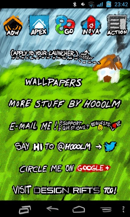It gives me great pleasure to present Freehand by Hooolm as a launcher theme that's designed to work with Apex, Nova, ADW, Go and Action Launcher.