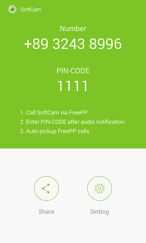 Feel wasted to have an extra old mobile phone at home? SoftCam can help you to change an old mobile phone to become a home surveillance cam. All you have to do is to install SoftCam App on your old Android mobile phone and complete a SoftCam number setup. To turn on SoftCam on your old mobile phone, simply log into FreePP APP on your handy mobile phone and dial the SoftCam number. Then you can start watching your home live streaming whenever and wherever you are.