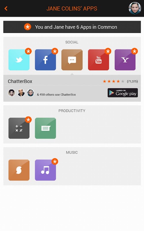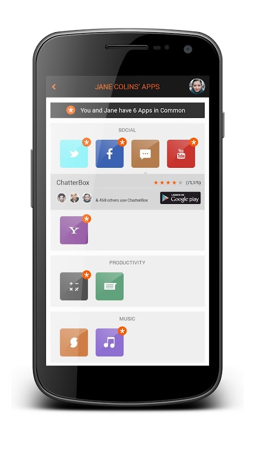 Friends App enables a new form of Android app discovery which never existed before. With Friends App Android app, you can discover the apps that your Facebook friends and Twitter friends use on their device and download them directly from Google Play. Find out the apps with friends.