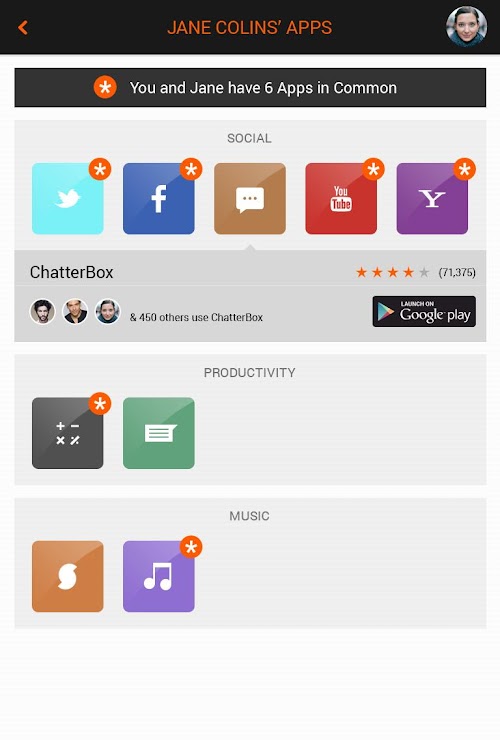We have made it easy for you to share the app via all popular apps like Facebook, Twitter, Whatsapp, Google Hangout, Email and the good old way - SMS. The more friends you invite to the app, the more fun it gets and the app discovery gets better for you and your friends. So go on, share your love and find friends apps.