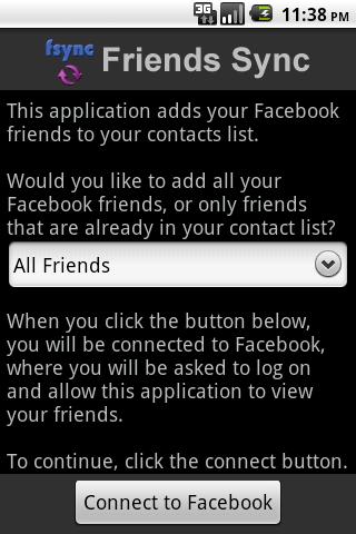 Adds your Facebook friends into your Contacts address book, and re-syncs them when their details change.