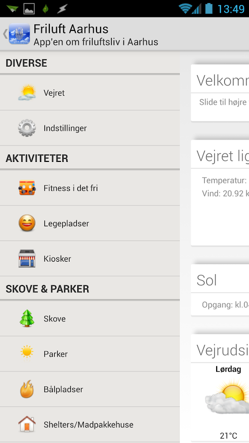 - Find nærmeste bålplads/kiosk/park etc.