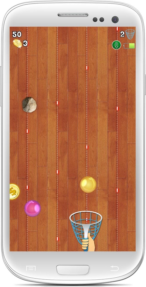 Each ball comes with surprise, which makes the game more interesting. A protection shield to protect your basket from stones and bombs. Slow down the game speed using “Slow ball”, which will give time to catch different balls. Use “Fast ball” to increase speed of all balls, but that might be risky. Use “Magnet Ball” to attract all balls in the screen into your basket, this is a quick way to collect all ball and increase your score.