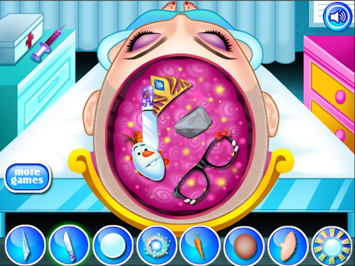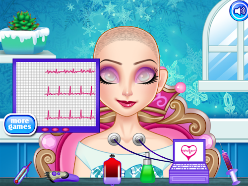 Put your scrubs on and start your neurologist role with a thorough medical exam in order to gather as many details as possible about frozen elsa’s health condition. Check out her temperature and her heart as well and once you’re sure she needs a brain surgery, start shaving her gorgeous blonde hair and prepare her for the long surgery hours. Then feel free to dig into her brain and make sure you use the right doctor tools to cut out her little obsessions, to repair whatever you find broken and to reactivate the dead synapses snowflakes.