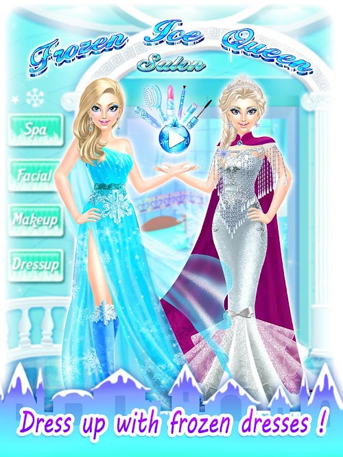 The princess needs your help to look more charming. You can start by her back spa, then facial her. Apply makeup to her pretty face, then pick up nice frozen ice themed hairstyles and snow dresses and accessories. All the world in the salon game is frozen!