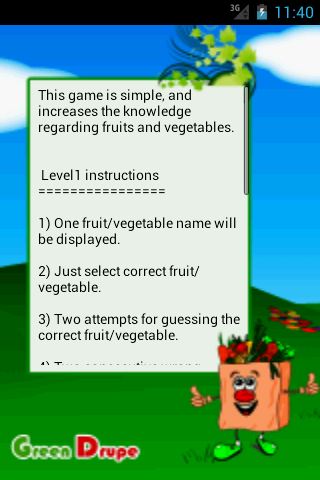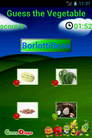 #How to play: Find the fruit or vegetable from the grid, and you will be asked for a next question. Once a level is completed, the score will be update. Mute music is default setting. You can turn on the music in option.