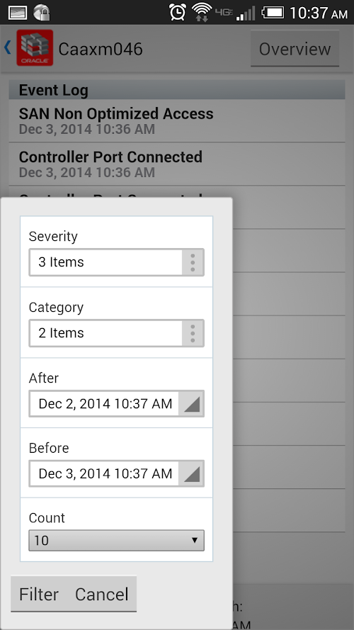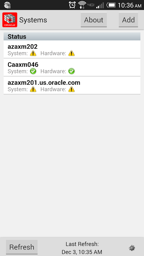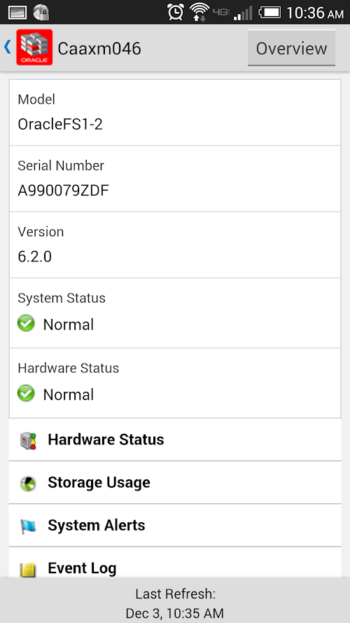 Monitor all your Axiom and Oracle Flash Storage systems from anywhere! FS Mobile is a monitoring tool that helps administrators monitor Axiom and Oracle Flash Storage systems via smart phone. FS Mobile provides monitoring of the health status of single- or multiple Axiom and Oracle Flash Storage systems. The user is able to quickly and easily view the status of their systems, and if there are problems can quickly drill down to pinpoint the hardware problem areas. FS Mobile also provides basic monitoring of IO and capacity statistics to help give initial insight into performance and resource usage on the Axiom and Oracle Flash Storage systems. FS Mobile complements the desktop FS System Manager which can then be used to provide the next level of more detailed information.