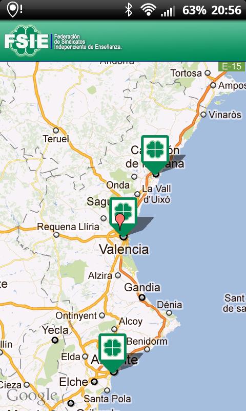 - Localización de las sedes FSIE Comunidad Valenciana.