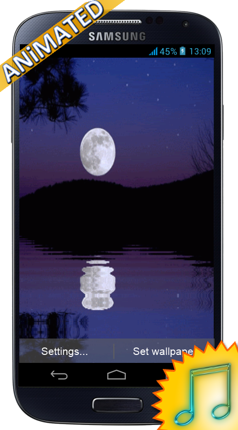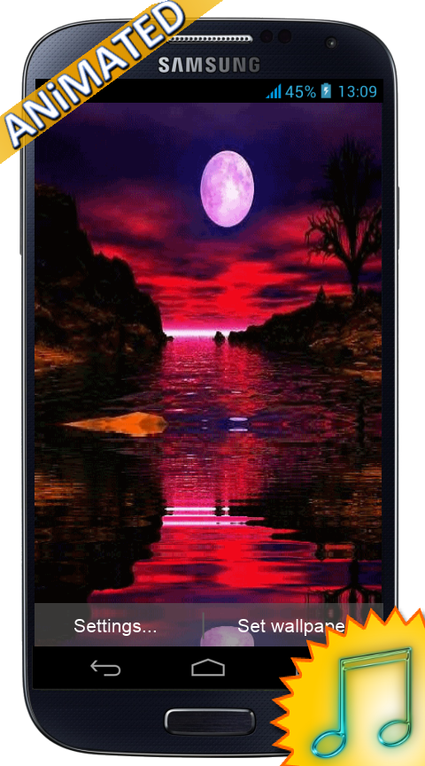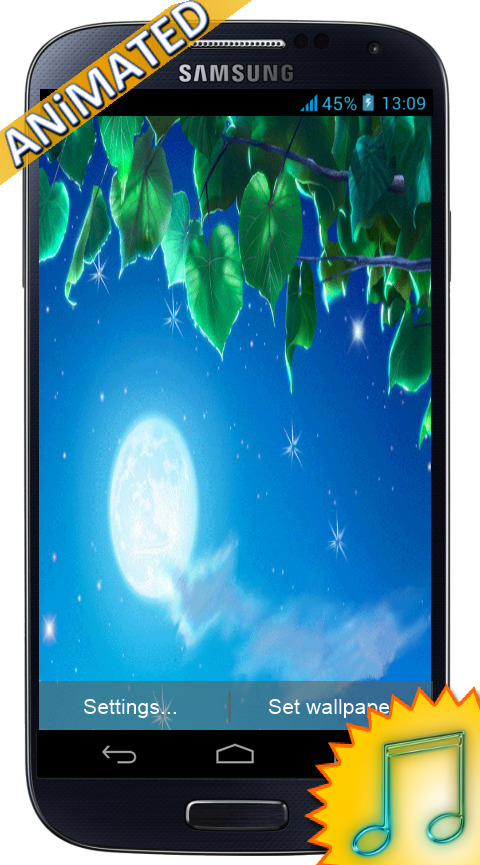 Excited about the full moon? Download our app Full Moon Live Wallpaper on your smartphone (tablet). Chosen in the settings Animated image, enables or disables the sounds of nature at night touching the screen.