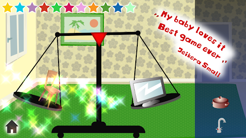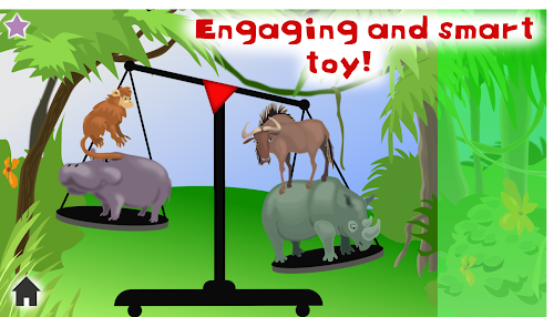 Engaging and smart baby app. Kids can experiment with real weight of objects. Put available things on the scale to balance it. With Fun animal weigh Free kid game, your baby learns how to weigh and tilt using a real beam balance scale.