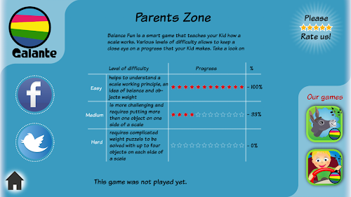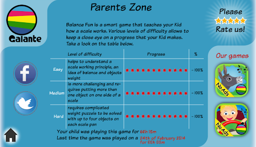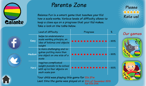 We added "For Parents" section - where  you can observe the child engagement and learning process. The number of smart stars will show you achievements and what is still too hard for your child.