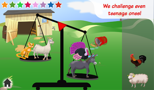 Download this edu app and observe how your kids learn simple maths, comparing weight of animals and making first step into physics.