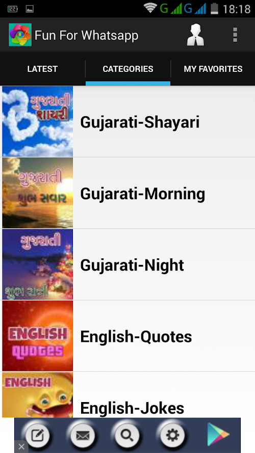 Fun For Whatsapp contains Three major languages like Gujarati, Hindi and English.