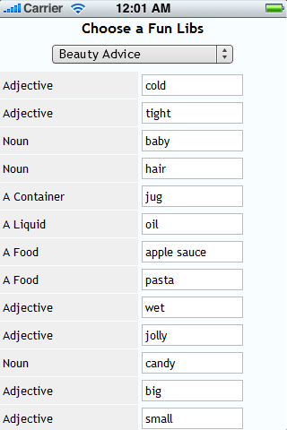 This app includes the following Fun Libs:
