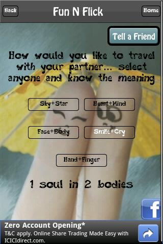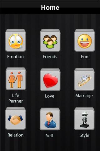 Emotions, Friends, Fun, Life Partner, Love, Marriage, Relation, Self, Style are the different facets of this application.