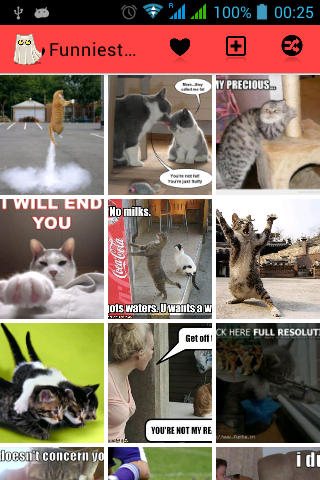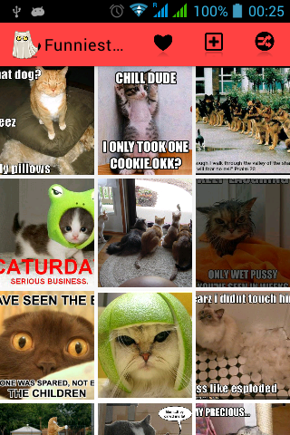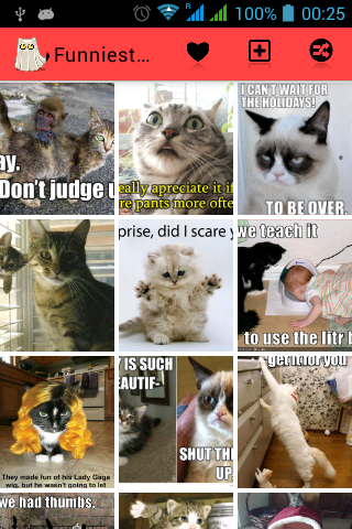 Funniest Cats Ever got enough pics to keep you amuzed for several hours and the list keeps growing so if you are getting bored or just want some fun pics to share with friends then this is the right app for you. Download Funniest Cats Ever now and start laughing!!!